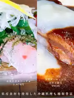🙋♂️ Pasta dishes using Okinawa soba noodles are now available! Sea grape peperoncino, octopus spaghetti, and purple yam pasta are new menu items☺️All of them are original and Okinawan! Okinawa soba Neapolitan has been around for a while and is a very popular menu item! 🙋♀️ There is a wide variety of Okinawan dishes! There are a wide variety of dishes, including dishes using fresh fish caught in Okinawa and rafute simmered until it is tender☺️