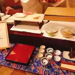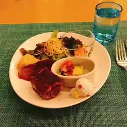 Enjoy a variety of buffet-style meals while overlooking the beautiful scenery of Manzamo and the hotel's garden pool.