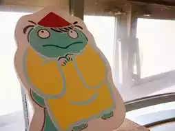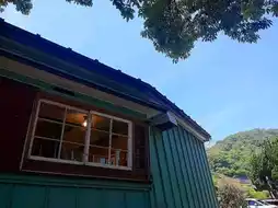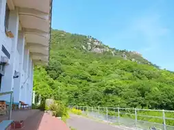 On the other hand, in the southern part of the island, facing away from Onomichi, there is a series of rock cliffs, and their dynamic shapes remind us of the active movement of the earth. As we drive up the mountainside of one of these rocky mountains, Mount Takami, a sign for "USHIO CHOCOLATL" suddenly appears. It feels quite out of place in the mountains, where there are few houses, but when we drive further, we come across a public facility called "Tachibana Nature Utilization Village Management Center". Our doubts only grow stronger, but when we go around to the front entrance of the building from the parking lot, we are captivated by the magnificent view of the Seto Inland Sea that opens up. Looking back at the building, the color and material are reminiscent of an elementary school building, but instead of being deserted, what catches our eye is a "ghost." Its unique color scheme and appearance reminds one of the signs and cheers made for a school festival, and the sense of incongruity changes to an exquisite excitement.