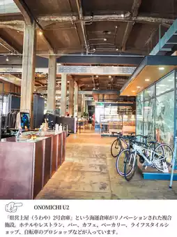 "ONOMICHI U2" is a renovated shipping warehouse in Onomichi, Hiroshima. It is a complex that promotes tourism and life in Onomichi, with a hotel, restaurant, cafe, general store, bicycle rental shop, and more. 🚩 ONOMICHI U2