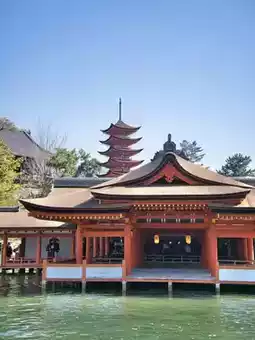 Itsukushima Shrine, located on Miyajima in Hatsukaichi City, Hiroshima Prefecture, is famous as one of the Three Most Scenic Views of Japan, and is also known as "Aki no Miyajima." The large vermilion-painted torii gate floating on the sea is breathtakingly beautiful and is registered as a World Heritage Site.