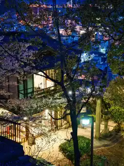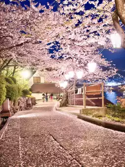 In particular, from dusk to night, the collaboration of the cherry blossoms with the sunset and night view is romantic!