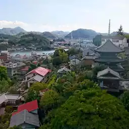 I took the ropeway to Mount Senkoji. At the top of the mountain, I ate some soft serve ice cream and then went to the observation deck. I could enjoy the Seto Inland Sea and the townscape of Onomichi. It was the end of October, but the autumn leaves had just started to change color? Or are there not many trees that change color?