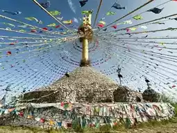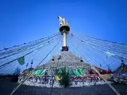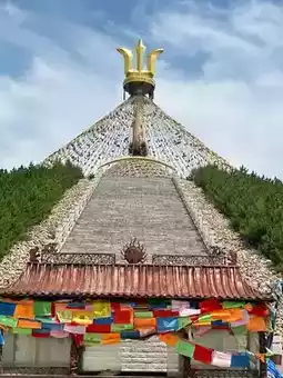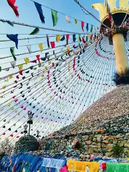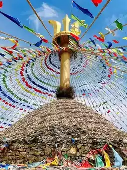 From the entrance, it looks majestic. Climbing up to the viewing platform, one can overlook the entire Kangbashi, watching the colorful prayer flags fluttering in the wind. It is said that Ejinaqi Aobao connects to the eternal heaven above and opens up the origin of all beings below, penetrating heaven and earth.