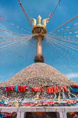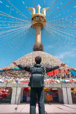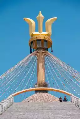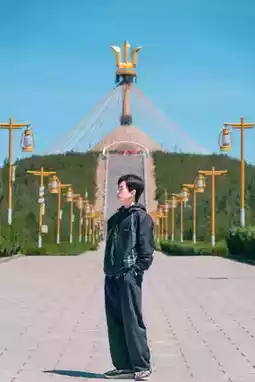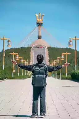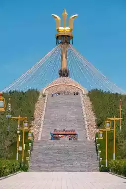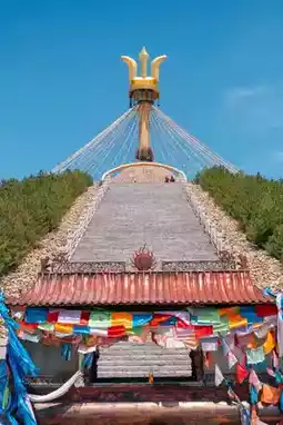 When I first made the travel plan, I noticed this huge Aobao, which is also a must-visit place in Ordos. So in the morning, I went from Dongsheng to Kangbashi, rode a small electric scooter to Yike Aobao. The weather was particularly good, and there were not many people. The Aobao is located on the top of the mountain, looking very spectacular from a distance.