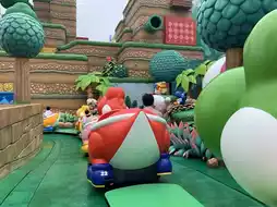 The attraction starts from a slightly elevated place, so you can get a panoramic view of Nintendo World!