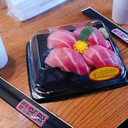 There is a dining area next to the store. The greasy tuna melts in your mouth. It's so delicious.