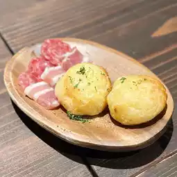 ・Freshly Baked Cheese Bread White mold salami and raw bacon ¥380