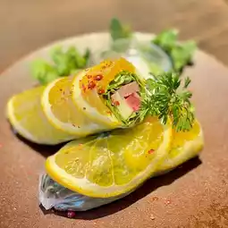 ・Duck and Orange Spring Rolls with Jasmine Rice Sauce 580 yen