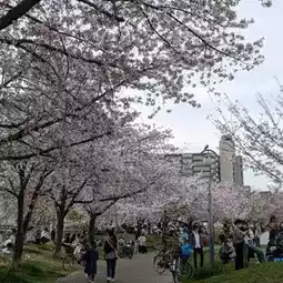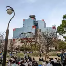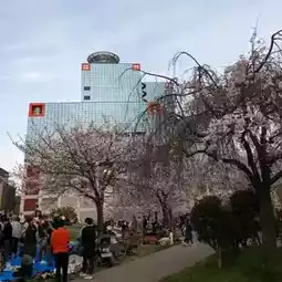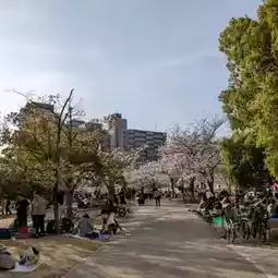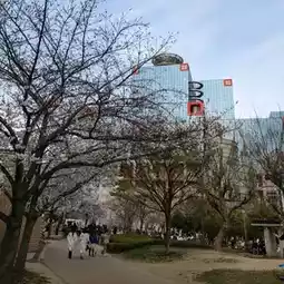 It is a fairly large park even in Osaka City, and in addition to the Kita Ward Office and Kansai TV, there are also many grounds, pools, gyms, and playground equipment, so it is full of parents and children on weekends and holidays, and today in particular it was overflowing with cherry blossom viewers.