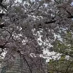 The cherry blossoms were about 50% to 80% in bloom, and it was very beautiful with the branches still swollen with buds, the branches that were bent from the blossoms blooming, and the petals of the cherry blossoms that had already started to fall fluttering in the wind.