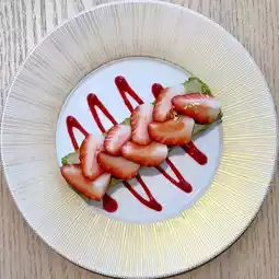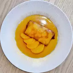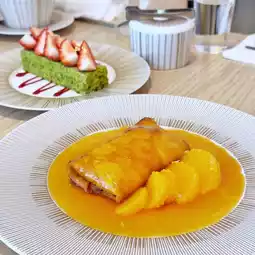 For dessert, French pizza is the French pizza, which is made with Qingmei oranges from Wakayama Zenmi Farm. The crêpe is cut open. The smooth and sweet French vanilla sauce immediately pours out.