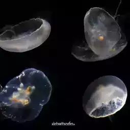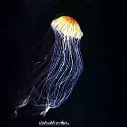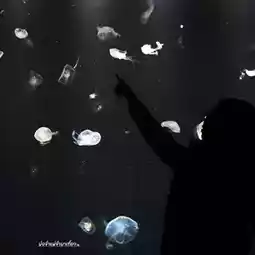 There is also a jellyfish zone with a galaxy theme. The small, transparent jellyfish move around, looking like bright stars in the sky. It's a beautiful picture.