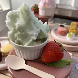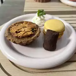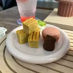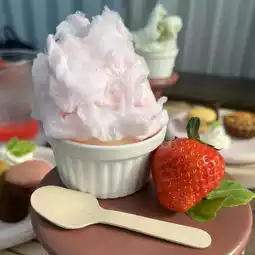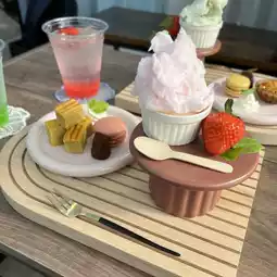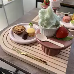 Mini tart, macaroon, truffle chocolate, ice cream, and cherry blossom and strawberry milk cotton candy.