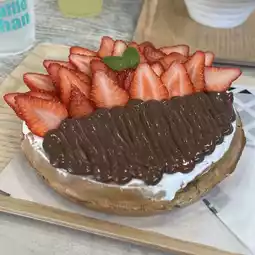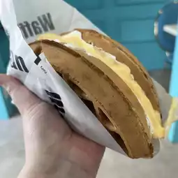 A waffle specialty store that has 190 stores in Korea and is also popular in Japan. The menu has a rich lineup of 15 types. The giant waffles with a diameter of 21 cm baked in the store come in two sizes: normal size and half size.