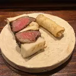-Rice dumplings made with Kibi black beef fillet from Isami Farm in Okayama
