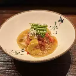 This kappo restaurant, run by owner-chef Mitsui Hidekazu, who is attentive to detail and particular about food, is a lively experience where you can enjoy it with all five senses. You can enjoy meat courses and a la carte dishes that bring out the natural flavor of the ingredients.