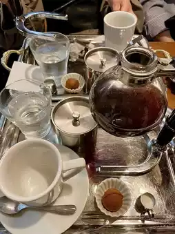 For hot coffee, you can choose between siphon and paper drip. We chose the siphon. They make each cup individually for each order, so it was very delicious.
