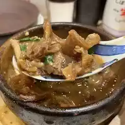 Doteyaki is a local Osaka dish with melt-in-your-mouth beef tendons and well-seasoned tofu. It is also recommended by the restaurant.