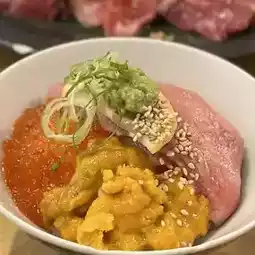 ・Grilled fatty meat, sea urchin, and salmon roe bowl