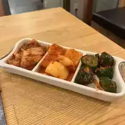 Assorted kimchi made with Chinese cabbage, kakuteki, and cucumber. Delicious kimchi with just the right amount of sourness.