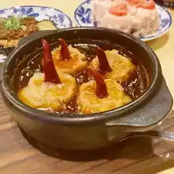 A chili pepper is stuck on top of the shumai soaked in chili oil🤣