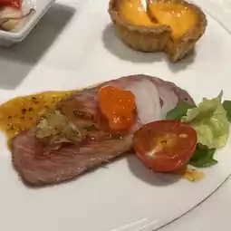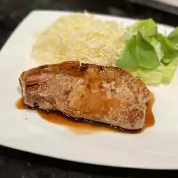 Tonteki made from Agu pork, which was raised on a diet of only pineapple. The fat is sweet and savory, making it delicious.