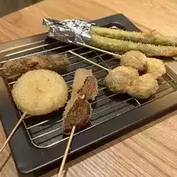 You can enjoy kushikatsu from the classics to the more creative ones, and they offer kushikatsu broth, dashi soy sauce, and snow salt, and also provide recommended ways to eat them.