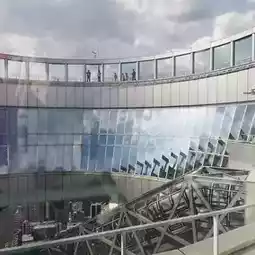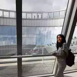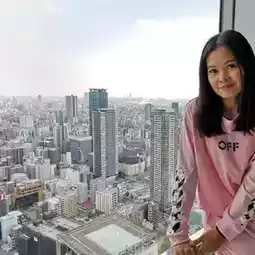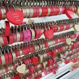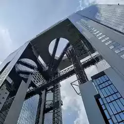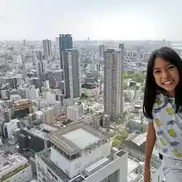 Follow them, take the elevator, take the escalator to the observation deck on top. It's a circular walkway where you can see the bottom of the building and the view of Osaka. It's so beautiful. There's even a padlock. It was quite windy when we went.