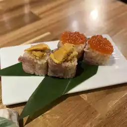 ・Meat-wrapped gunkan with sea urchin and salmon roe