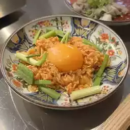 Raw horumon eaten with egg yolk. The taste and texture of the chives add an accent. Enjoy the crunchy texture.