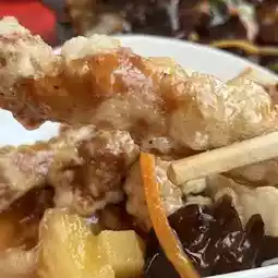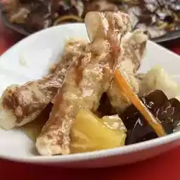 The ingredients include pineapple and wood ear mushrooms, but it also contains a lot of pork.