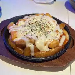 A dish that goes perfectly with alcohol, with tteokbokki and potatoes topped with sweet and spicy cheese. It's just the right amount of spicy, so even people who don't like spicy food can enjoy it.