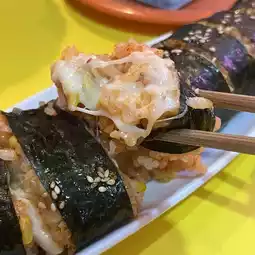 The stretchy cheese makes it even more delicious. The slightly spicy kimbap is made mellow with cheese.