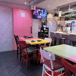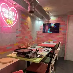 A restaurant located about a 3-minute walk from Higashi Umeda Station on the Tanimachi subway line, where you can enjoy delicious authentic Korean food in a cute interior with pink neon lights.