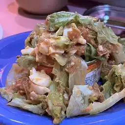 A salad made with plenty of chamchi, a Korean canned tuna. The slight spiciness is delicious and addictive.