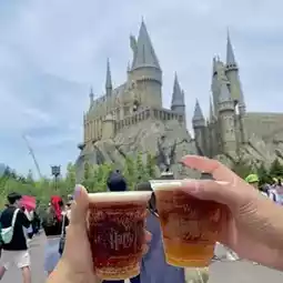 The day we went, there were a lot of people. It's easy to look at the map on your phone. The first place we went to was the Harry Potter zone. At the entrance, there was Arthur's Ford Anglia. People were stopping to take pictures. We rushed to continue and bought a magic wand. When we walked out, there was a lake and we saw a castle. It was really beautiful. There were many rides inside. The one you can't miss is the Butterbeer. Don't forget to come and visit.