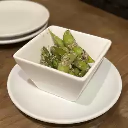 Edamame with an appetizing garlic aroma and a slight spicy kick.