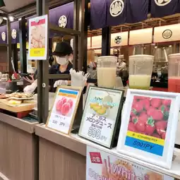 Skewered seafood at the fish shop, fresh juice at the fruit shop, and matcha soft serve at the tea shop✨