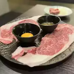 * Meat served first: grilled shabu-shabu, horumon kalbi, Chami pork loin, lean steak, kalbi and vegetable platter served first.
