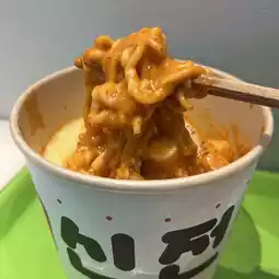 The ramen is well coated with the sauce, and the chewy, soft tteokbokki allows you to enjoy its sweetness and texture.