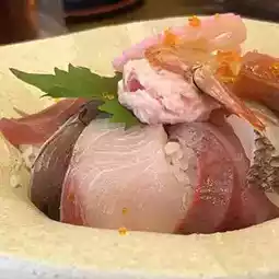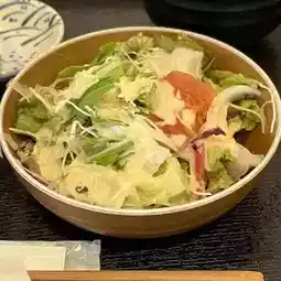 The restaurant's specialty is the seafood bowl, which is topped with tuna, yellowtail, bonito, yellowtail, tuna, shrimp, and flying fish roe. The ingredients are fresh and chewy. It comes with salad and miso soup with just the right amount of salt.