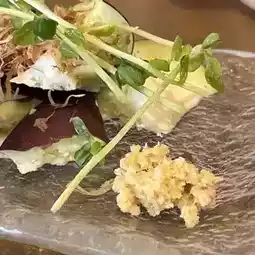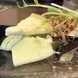 Raw water eggplant with a slightly sweet taste and unique texture. Eat it with ginger and soy sauce.