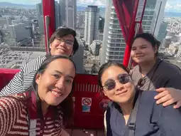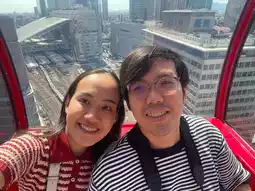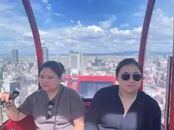 HEP five is another Ferris wheel to see Osaka city, not the one by the bay. We came here because it's free if you have the Osaka Amazing Pass, so we just sat and played for fun, 4 of us. But the line was long. We didn't think we'd have to wait long, but actually, some of them couldn't be ridden because the air conditioning system was broken. So we could only ride some of them, which made the line run slowly. Overall, it was quite scary. The Ferris wheel slowly rotates, and the surrounding view is beautiful. If you have time, you should stop by. #osakatravel