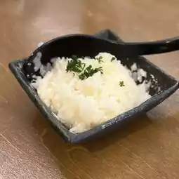 The risotto for the end is made with hamburger steak's special demi-glace sauce. The cheese risotto has a demi-glace flavor with black pepper as an accent. It is recommended to leave a little of the hamburger steak and mix it into the risotto.
