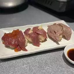 ▼ All-you-can-eat Korean food including samgyeopsal set + meat sushi 3,550 yen