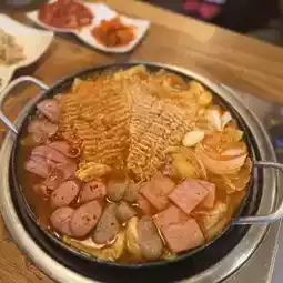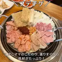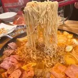 This time I ordered "Budae Jjigae" from 1980 yen per person. The delicious flavor is released from many types of sausage and ham🎉. Plenty of vegetables and dried noodles make it a very filling meal!