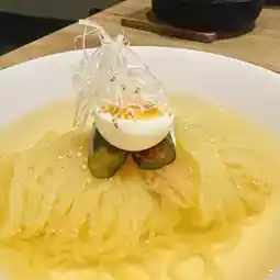 A large piece of meat lightly seared and served with egg yolk sauce✨