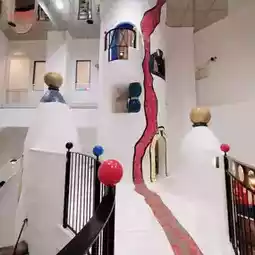 With maze-like corridors, curved walls, and windows of different shapes and colors, it feels like you've entered a storybook.