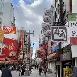 Nearby, there is a street lined with colorful sleeve signs that are typical of Osaka, and it makes you feel like you're in Osaka😌
